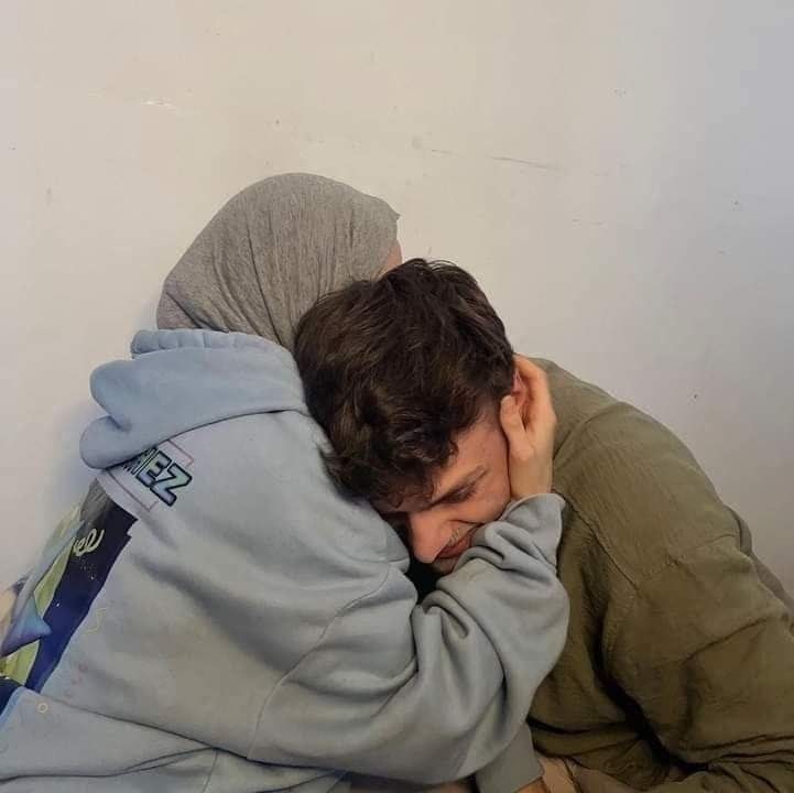 يونس الدموع لمعت فِ عيونه من منظرها وحضنها جامد بعزم قوته
